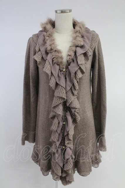 axes femme / ファー&シフォンフリルニットロングカーディガン ピンク T-25-11-23-009-AX-TO-SA-ZT [2100060000039437-T-25-11-23-009-AX-TO-SA-ZT]