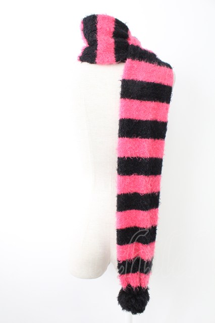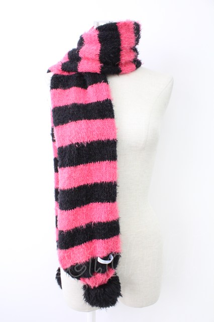 PUTUMAYO / ボーダーマフラー 黒X濃ピンク T-25-11-23-043-PT-ZA-SA-ZT [2100060000039430-T-25-11-23-043-PT-ZA-SA-ZT]