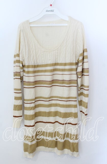 axes femme / ボーダーニットチュニック アイボリー×イエロー O-25-11-21-046-AX-TO-IG-OS [2100080000065284-O-25-11-21-046-AX-TO-IG-OS]