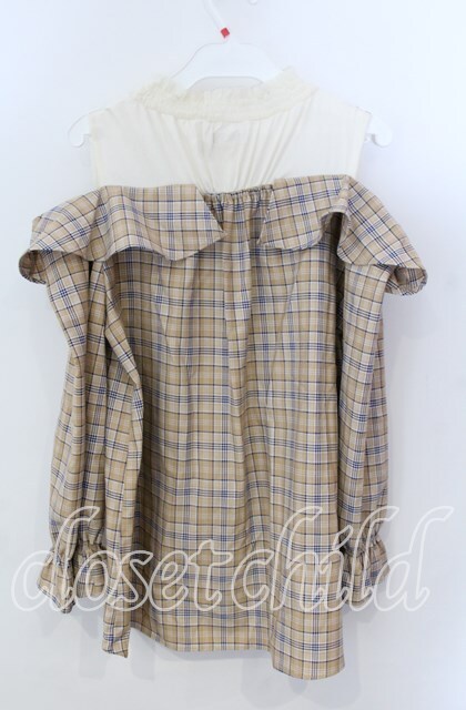 axes femme POETIQUE / オフショルレイヤード風シャツ M ベージュ×アイボリー O-25-11-21-043-AX-TO-IG-OS