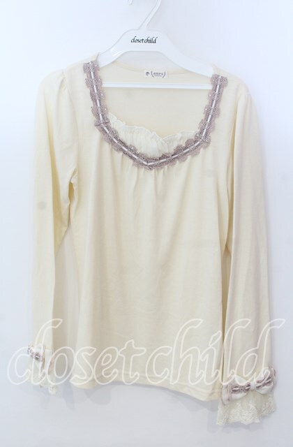 axes femme / 袖リボンはしごレースカットソー アイボリー O-25-11-21-045-AX-TO-IG-OS [2100080000065283-O-25-11-21-045-AX-TO-IG-OS]