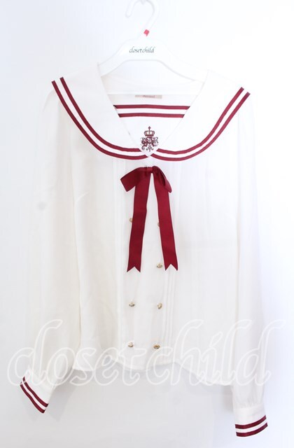 Amavel / セーラープルオーバーブラウス シロ×アカ O-25-11-21-029-CA-BL-IG-OS