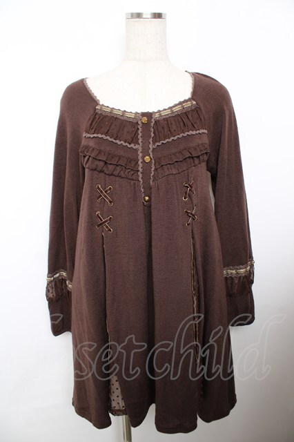 axes femme / 編み上げチュニック ブラウン Y-25-11-21-009-AX-OP-SZ-ZY