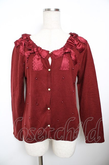 axes femme / リボンニットカーディガン M ワイン Y-25-11-21-018-AX-TO-SZ-ZY