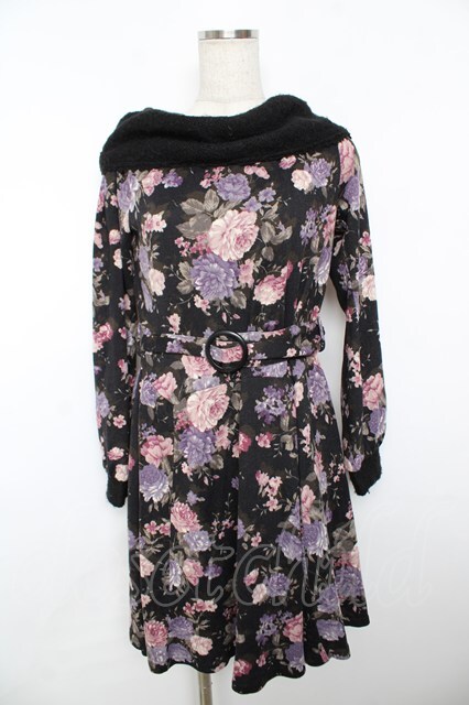 axes femme / 総花柄リブ使いカットチュニ 黒 Y-25-11-21-084-AX-OP-SZ-ZY