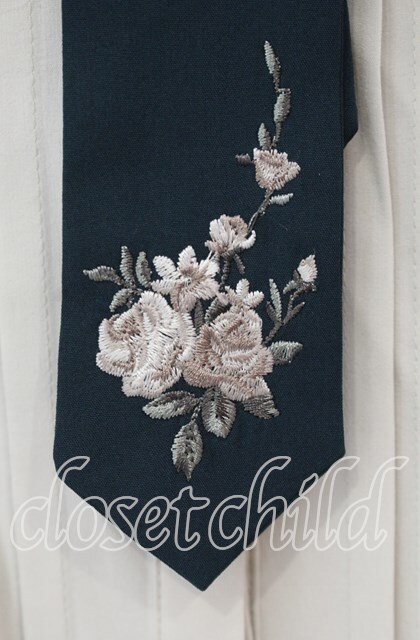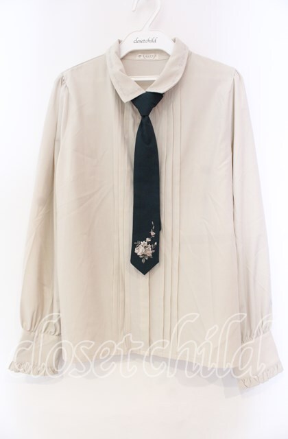 axes femme / バラ刺繍ネクタイ付きブラウス ベージュ×グリーン O-25-11-22-085-AX-BL-IG-OS