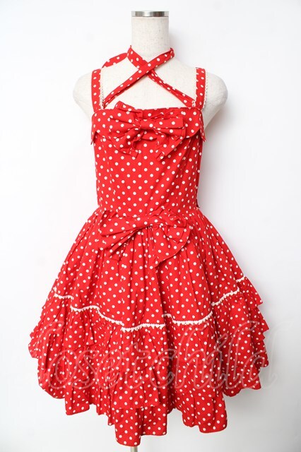 BABY, THE STARS SHINE BRIGHT / ドット・フリルジャンパースカート 赤 Y-25-11-24-086-BA-OP-SZ-ZY