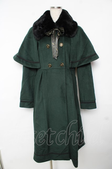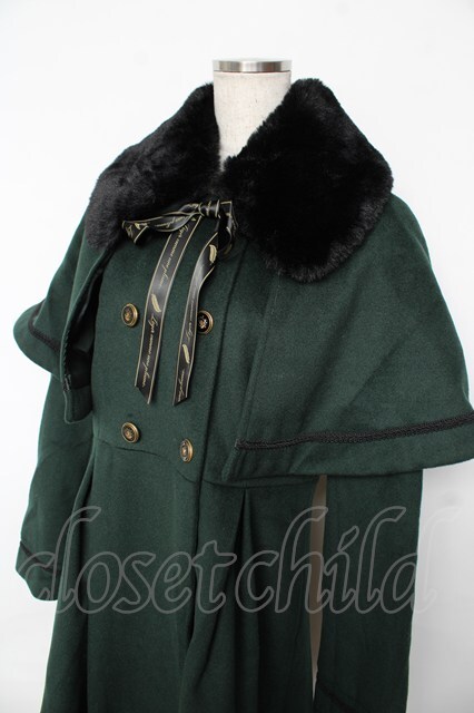 axes femme POETIQUE / ファー襟付きケープロングコート グリーン Y-25-11-24-098-AX-CO-AS-ZY