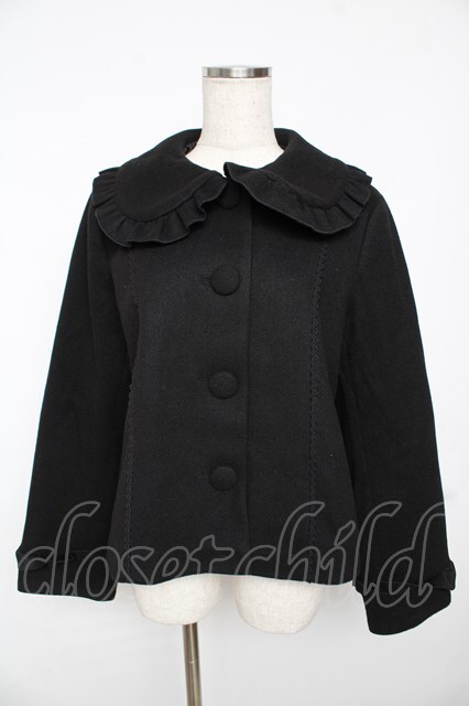 axes femme kawaii / フリルカラーショートコート M 黒 Y-25-11-24-103-AX-CO-SZ-ZY