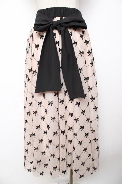 evelyn / リボン柄シアー重ねスカート ピンク Y-25-11-24-127-LO-SK-SZ-ZY