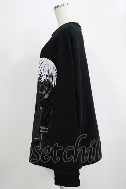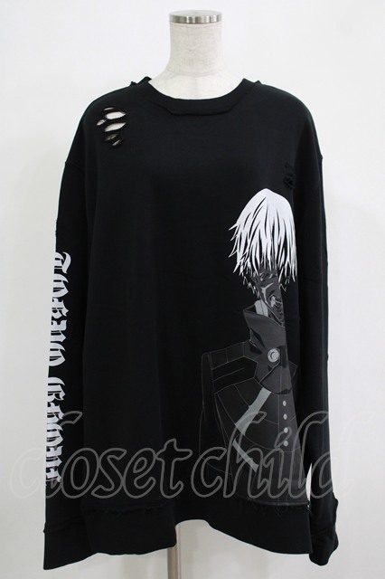 QOOZA / 東京喰種×QOOZA金木研 ダメージスウェット ブラック H-25-11-28-024-PU-TO-KB-ZH