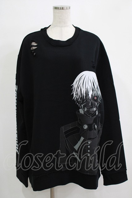 QOOZA / 東京喰種×QOOZA金木研 ダメージスウェット ブラック H-25-11-28-026-PU-TO-KB-ZH