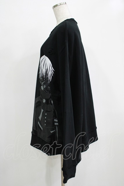 QOOZA / 東京喰種×QOOZA金木研 ダメージスウェット ブラック H-25-11-28-027-PU-TO-KB-ZH