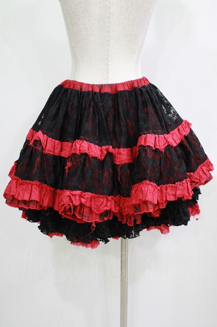 FRILL / ダメージフリルレーススカート 黒×赤 H-25-11-28-049-HN-SK-KB-ZH [2100030000079206-H-25-11-28-049-HN-SK-KB-ZH]