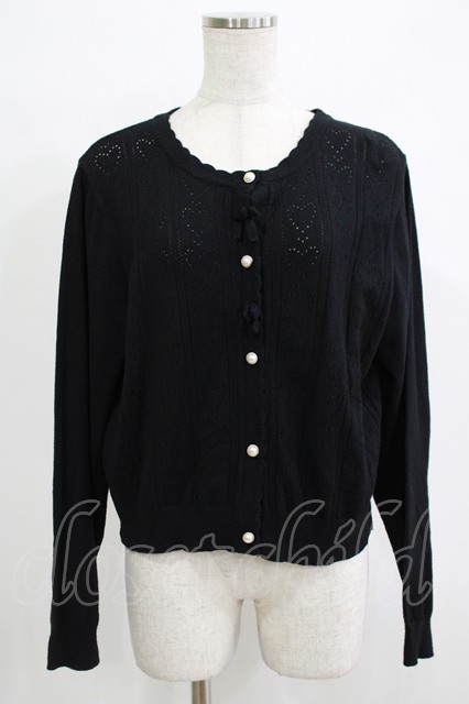 m petit by misako / AM*ハート透かしニットカーディガン LL ブラック H-25-11-29-054-LO-TO-NS-ZH [2100030000079318-H-25-11-29-054-LO-TO-NS-ZH]