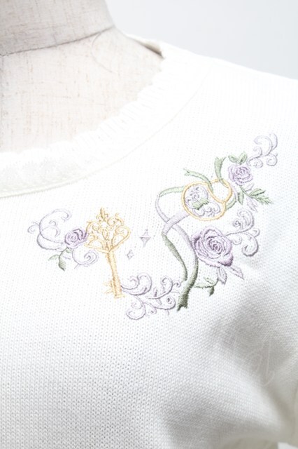 axes femme / メルヘン刺繍ニット 白 S-25-11-22-039-AX-BL-HR-ZS