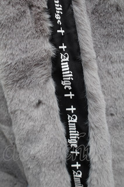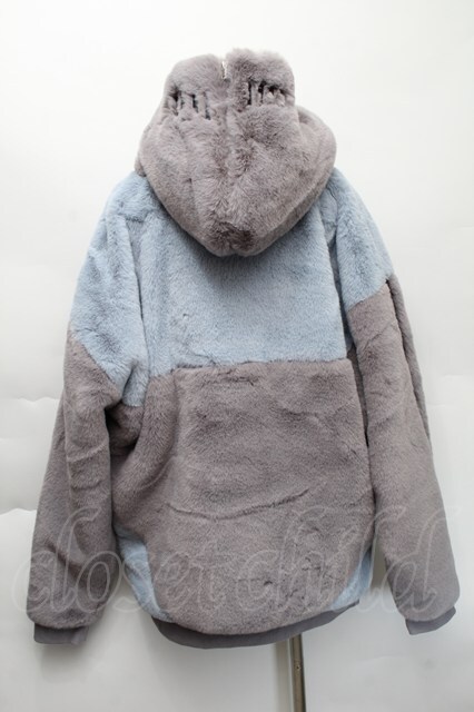 Amilige / フード刺繍切り替えファーパーカー グレーxサックス S-25-11-22-047-PU-TS-AS-ZS
