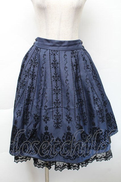 axes femme / 花フロッキープリントスカート 紺 S-25-11-22-056-AX-SK-AS-ZS