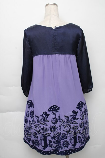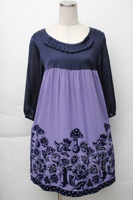 Emily Temple cute / フォレストフロッキーワンピース ラベンダーx紺 S-25-11-23-039-ET-OP-HR-ZS