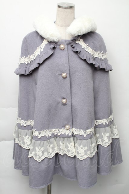 axes femme kawaii / ローズフリルケープコート M サックス S-25-11-23-052-AX-CO-HR-ZS