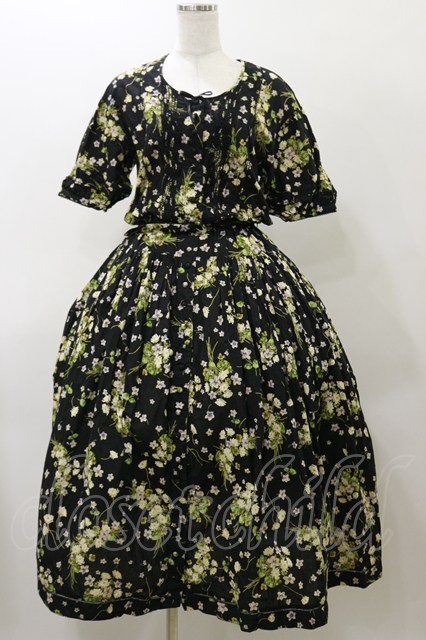 PINK HOUSE / すみれとブーケワンピース Free ブラック H-25-11-24-1069-LO-OP-NS-ZH
