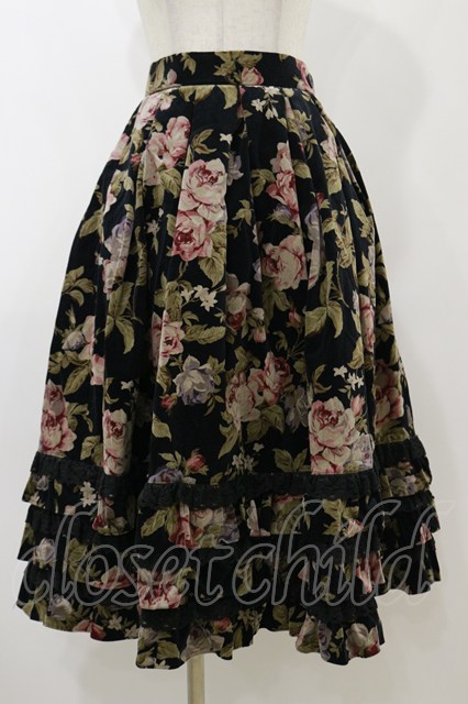 Innocent World / 別珍バラ柄バッスルスカート Free ブラック H-25-11-24-1050-IW-SK-NS-ZH