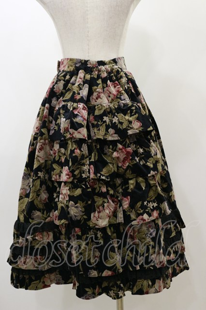 Innocent World / 別珍バラ柄バッスルスカート Free ブラック H-25-11-24-1050-IW-SK-NS-ZH [2100030000078679-H-25-11-24-1050-IW-SK-NS-ZH]