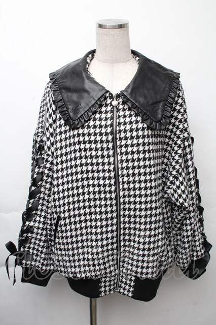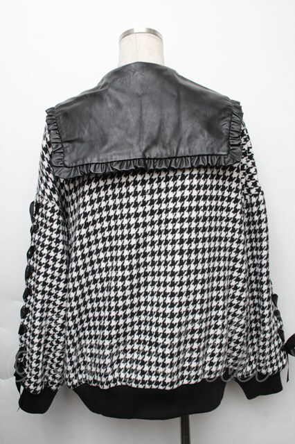 Honey Cinnamon / 千鳥柄レザー襟ジャケット 黒x白 S-25-11-23-1030-LO-JA-HR-ZS