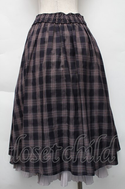 axes femme / 裾プリーツチェック柄スカート 紺 S-25-11-23-1056-AX-SK-HR-ZS