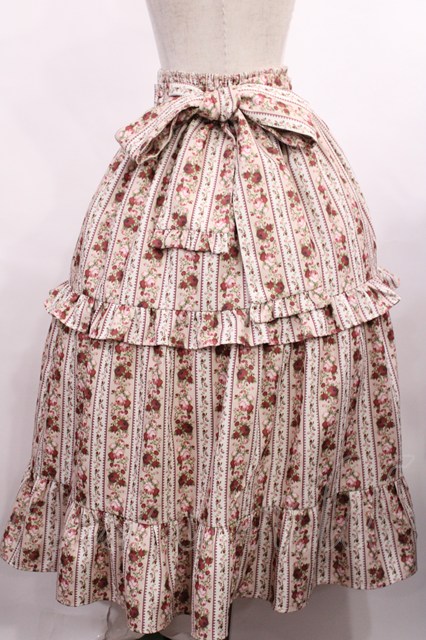 axes femme kawaii / ストライプローズ柄スカート M 生成り H-25-12-01-1019-AX-SK-NS-ZH