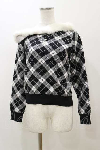 Ank Rouge / ワンショルファーニットプルオーバー M ブラック H-25-12-02-059-CA-TO-NS-ZH