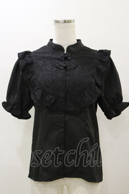 axes femme kawaii / アームカバー付チャイナ釦ブラウス M ブラック H-25-12-02-042-AX-BL-NS-ZH [2100030000079557-H-25-12-02-042-AX-BL-NS-ZH]