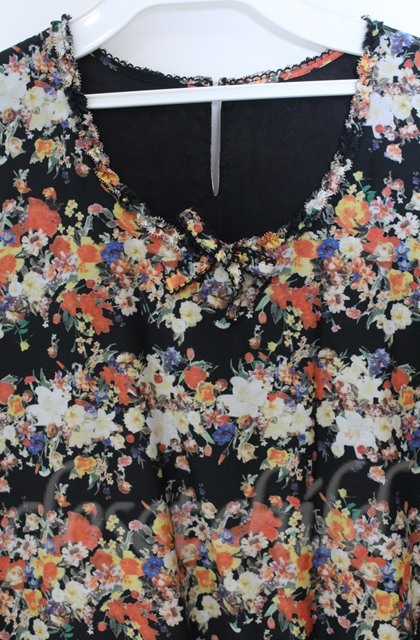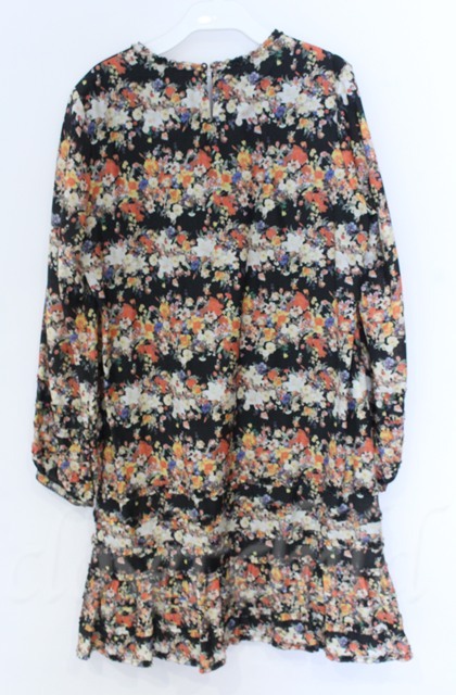 INGEBORG / ローンフリル使い花柄ワンピース 11号 クロ O-25-11-24-012-LO-OP-OW-OS