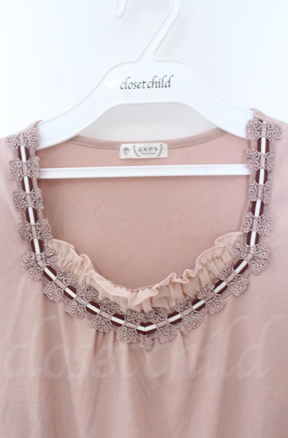 axes femme / 袖リボンはしごレースカットソー ピンク O-25-11-24-007-AX-TO-IG-OS [2100080000065294-O-25-11-24-007-AX-TO-IG-OS]