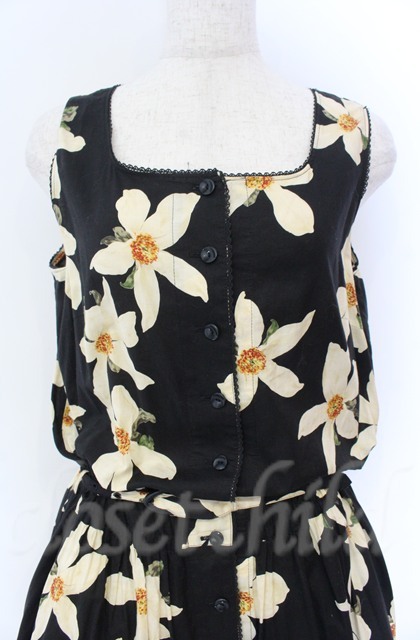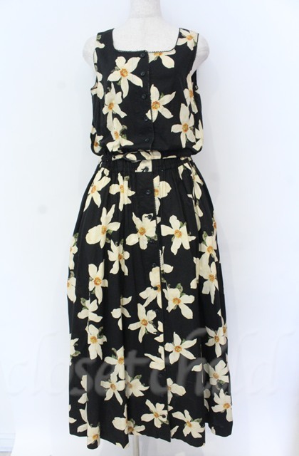 INGEBORG / くちなし柄ワンピース クロ O-25-11-24-008-LO-OP-OW-OS