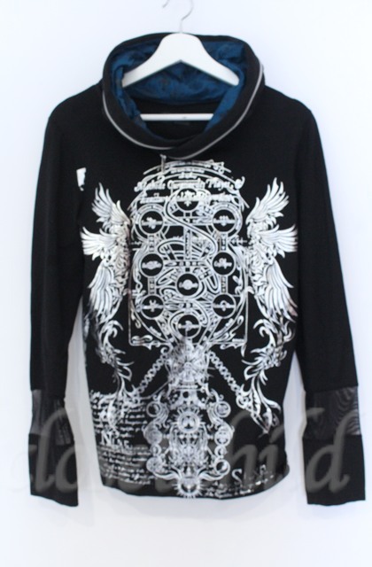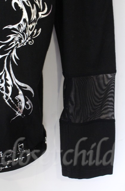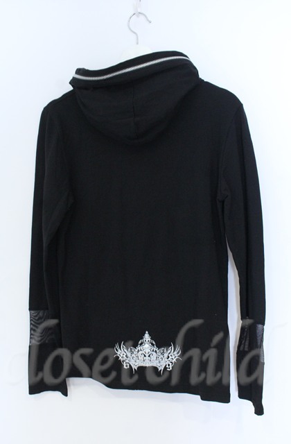 Sixh / 箔ptフード付きカットソー ブラック O-25-11-24-045-HN-TO-OW-OS