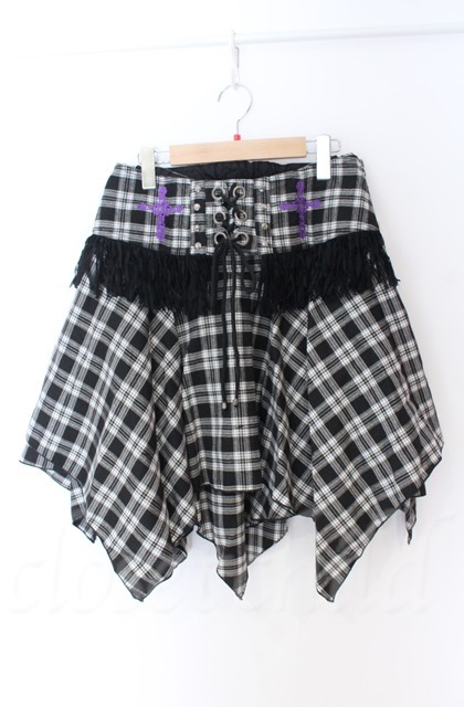 ALGONQUINS / フリンジコルセット付きイレヘムタータンスカート F ブラックxホワイト O-25-11-24-049-AL-SK-YM-OS