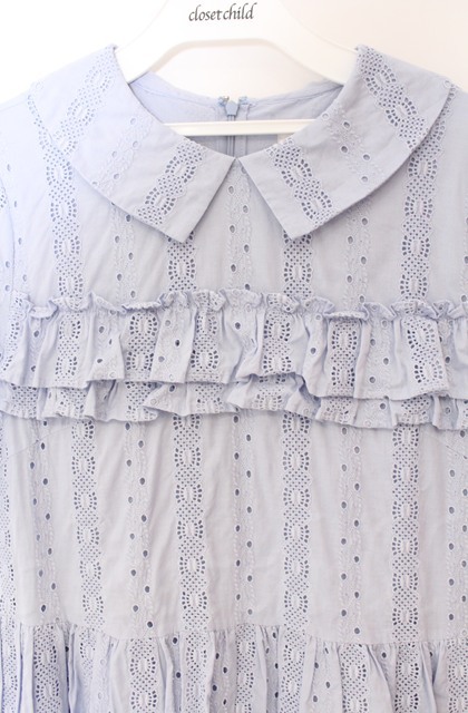 Jane Marple / Vintage stripe lace frill-trim dress ドレス M サックス O-25-11-24-027-JM-OP-IG-OS [2100080000065760-O-25-11-24-027-JM-OP-IG-OS]