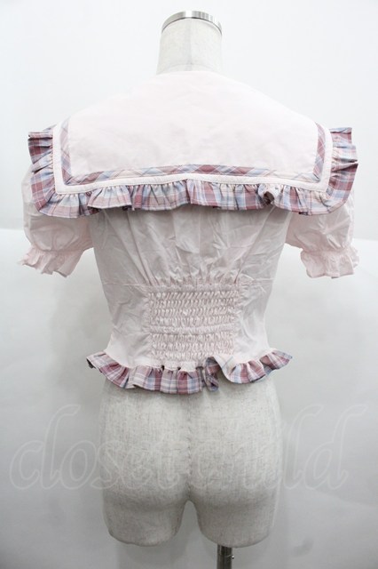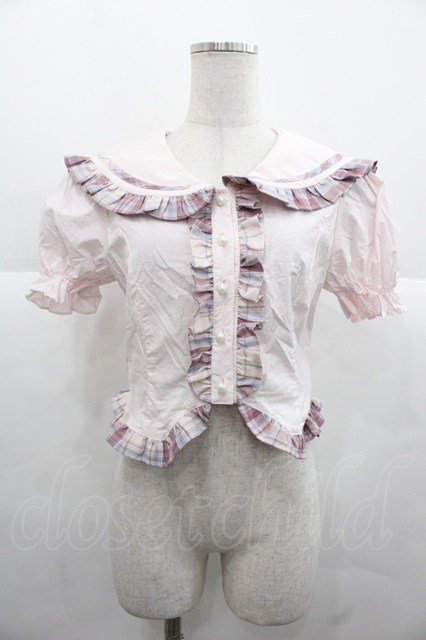 Ank Rouge / チェックフリルセーラー襟半袖ブラウス ピンク I-25-11-24-005-CA-BL-SA-ZI