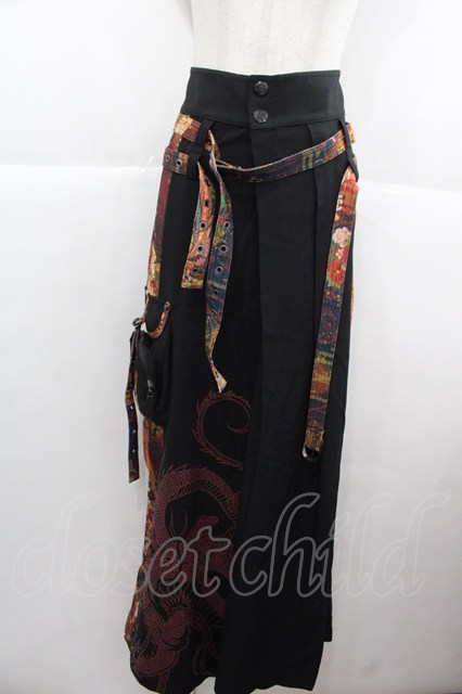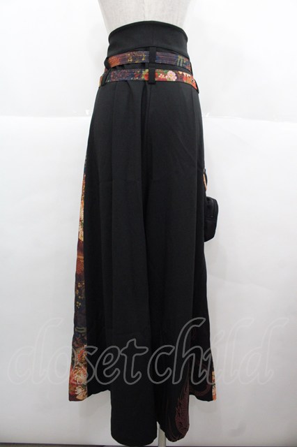 Qutie Frash / 和柄切替ワイドパンツ 黒XオレンジX紺 I-25-11-24-092-QU-PA-SA-ZI [2100060000045758-I-25-11-24-092-QU-PA-SA-ZI]