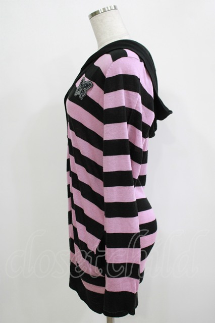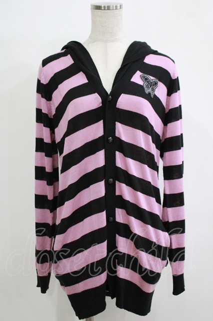 ALGONQUINS / フード付きボーダーニットカーディガン F 黒×ピンク H-25-12-03-071-AL-TO-KB-ZH