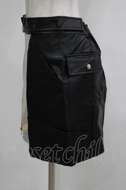 LISTEN FLAVOR / ホログラフィックレザー台形スカート ブラック H-25-12-03-053-PU-SK-KB-ZH [2100030000067278-H-25-12-03-053-PU-SK-KB-ZH]