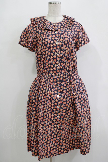 Jane Marple Dans Le Salon / Pepプリントのタックカラーワンピース M ブルー H-25-12-03-040-JM-OP-KB-ZH