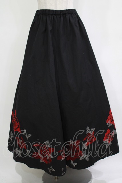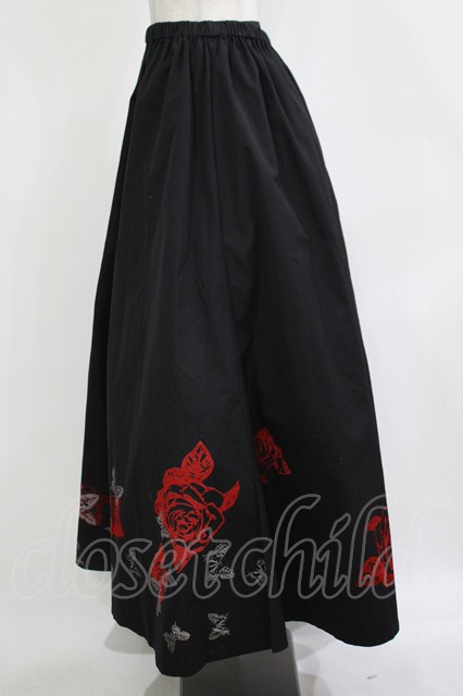 h.NAOTO / 裾プリントロングスカート 黒 H-25-12-03-017-HN-SK-KB-ZH [2100030000067793-H-25-12-03-017-HN-SK-KB-ZH]