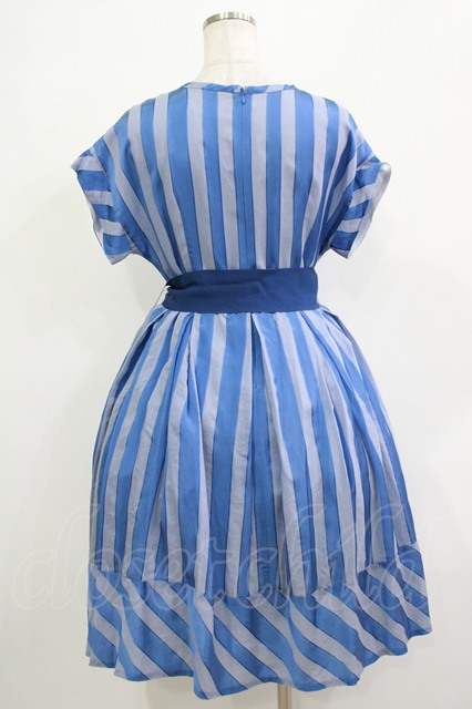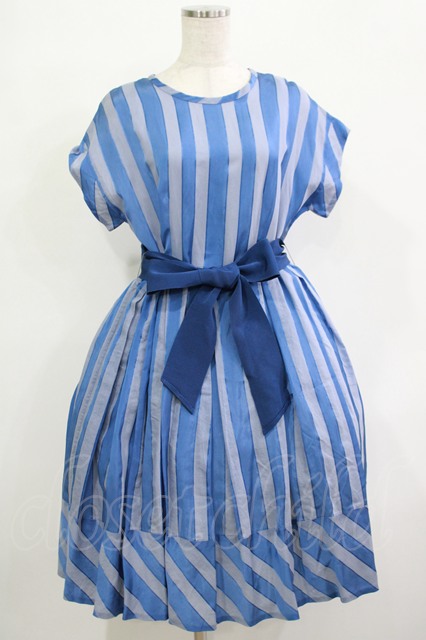 Jane Marple / リボン付ストライプドレス ブルー H-25-12-03-021-JM-OP-KB-ZH