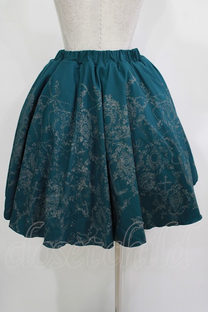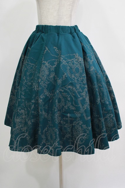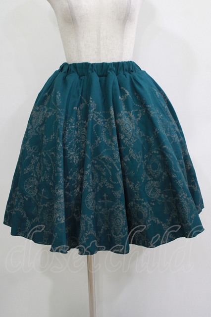 Ozz Croce / プリントギャザースカート グリーン×グレーチュール H-25-12-03-032-OO-SK-KB-ZH