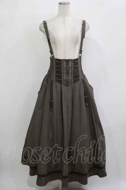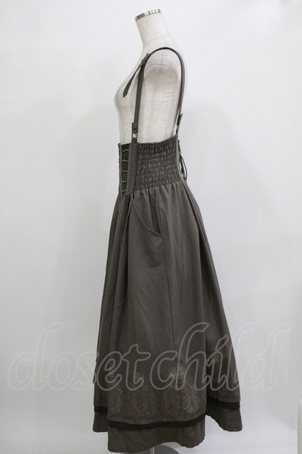 Rozen Kavalier / 天使フレームプリントサス付ロングスカート カーキ H-25-12-03-013-OO-SK-KB-ZH