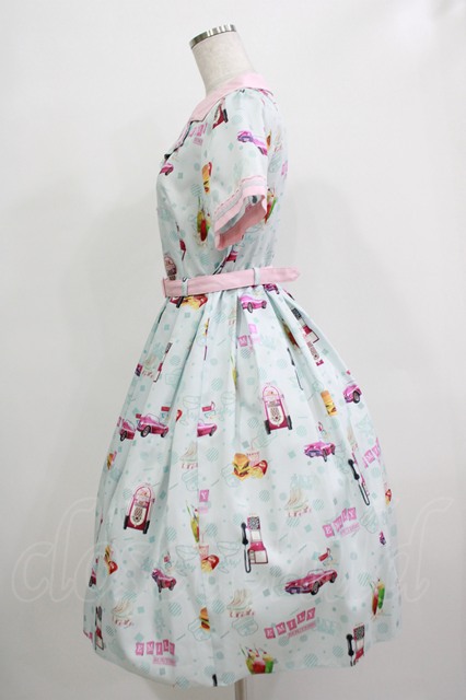 Emily Temple cute / アメリカンダイナーワンピース サックス H-25-12-03-004-ET-OP-KB-ZH [2100030000058521-H-25-12-03-004-ET-OP-KB-ZH]