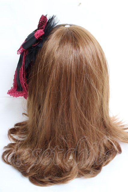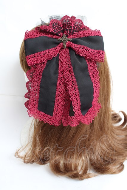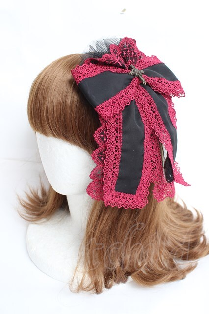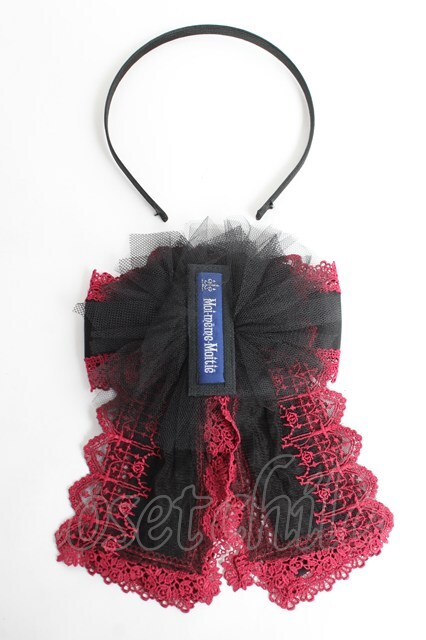 Moi-meme-Moitie / M+CROIXリボンレースカチューシャ ブラック×レッド Y-25-11-26-024-MO-AC-SZ-ZY