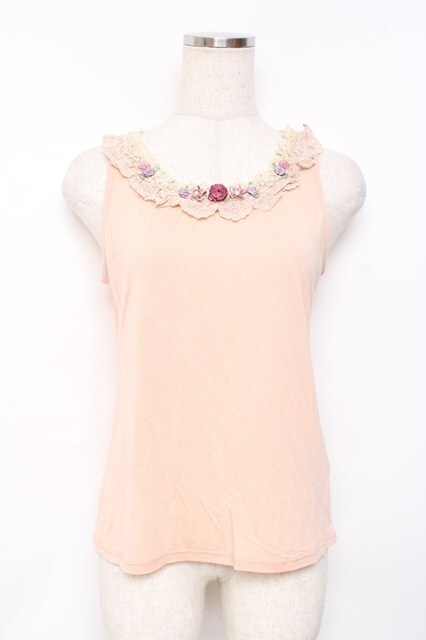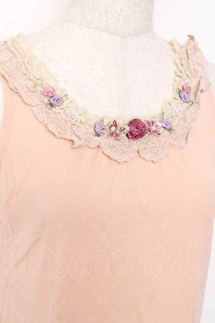 axes femme / ガーデンフリルレースタンク M 淡ピンク Y-25-11-26-041-AX-TO-SZ-ZY